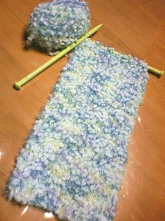 100均でみつけた可愛い毛糸で、マフラーに挑戦中。