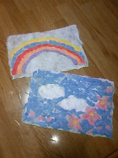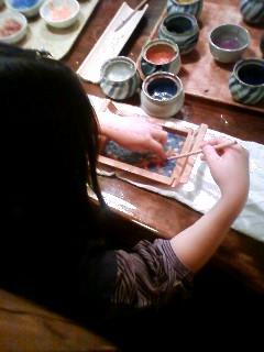 結局、紙すきで和紙の絵付けをしました。