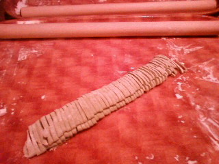 最初に、用意してあった生地を延ばして切る作業。
