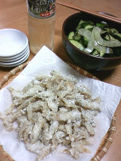 頭とワタを指でちぎりとって(←表現が気持ち悪い)小麦粉か片栗粉をうっすらとまぶし、