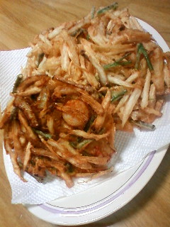 昨日の夕飯、うどん用のかき揚げです。