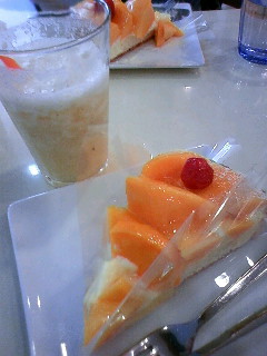 念願のカフェタイムはマンゴータルト♪(お店の名前忘れました;)