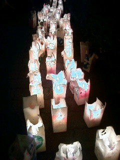 市内の小学生が作ったたくさんのキャンドルがキラキラと原爆ドームを囲んでいました。